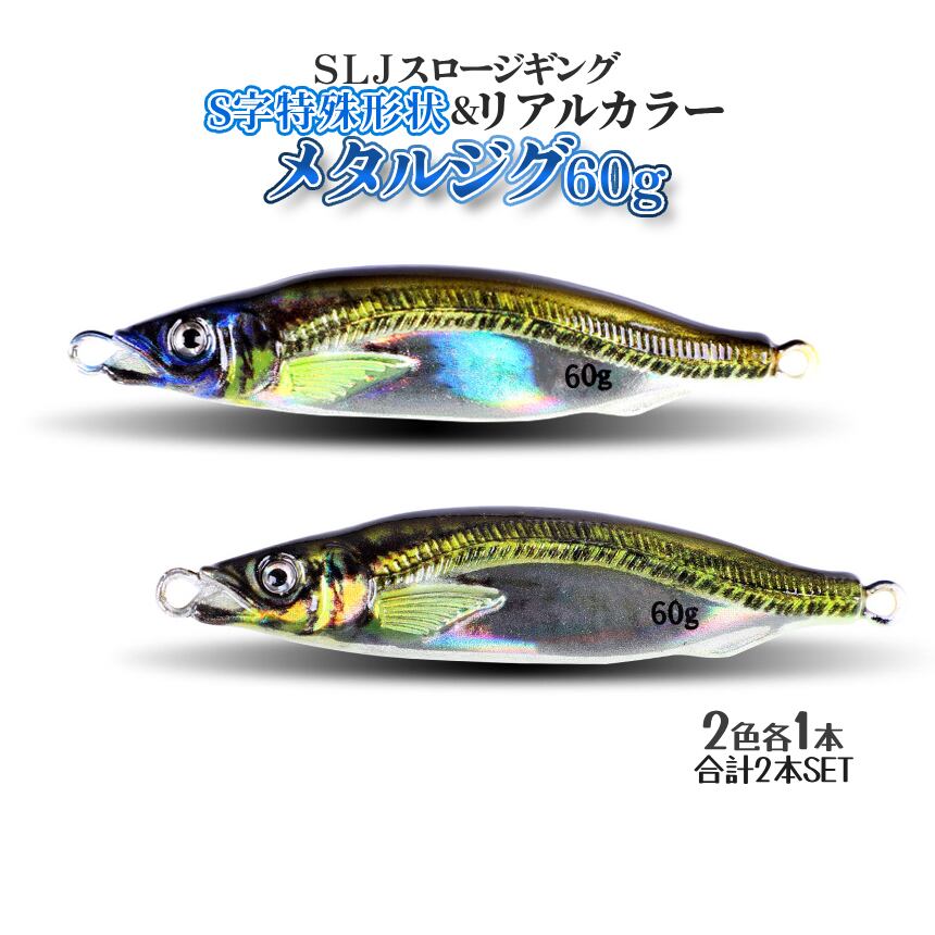 SLJ ジグ 60g 2色SET 遠投 ぶっ飛び 3D リアルカラー ベイト アジ ゴールド ブルー シルバー ジギング メタルジグ 2個 鏡面 グロー 夜光 青物 真鯛 3DMIRAJIG60