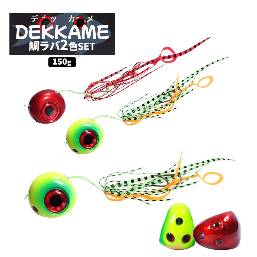 鯛ラバ ジグ 150g 2個セット 2色 黄緑 赤 タイラバ オフショア 安定姿勢 スカート ネクタイ フック 付属 誘導式 真鯛用 青物 釣り フィッシング DEKKAME150