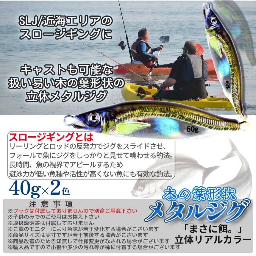 SLJ ジグ 40g 2色SET 遠投 ぶっ飛び 3D リアルカラー ベイト アジ ゴールド ブルー シルバー ジギング メタルジグ 2個 鏡面 グロー 夜光 青物 真鯛 3DMIRAJIG40