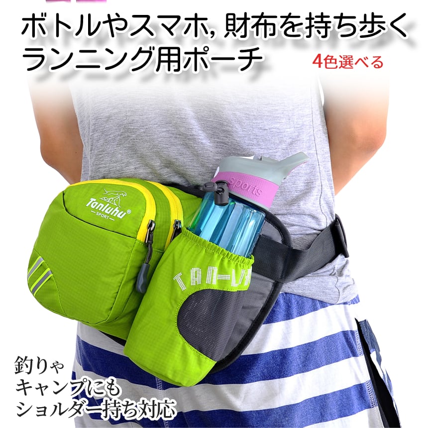 ランニング ポーチ スポーツ バッグ ペットボトル ウエストポーチ ウェスト ジョギング ショルダーバッグ ドリンクホルダー 反射 防水 釣り 男女 兼用 RUNDPO