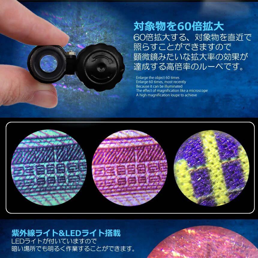 ミニ ルーペ LEDライト UVライト LED ライト 60倍 拡大 ブラックライト 紫外線 拡大鏡 細かい 作業 虫めがね 顕微鏡 鑑定 宝石 小型 携帯 コンパクト BKRUPE