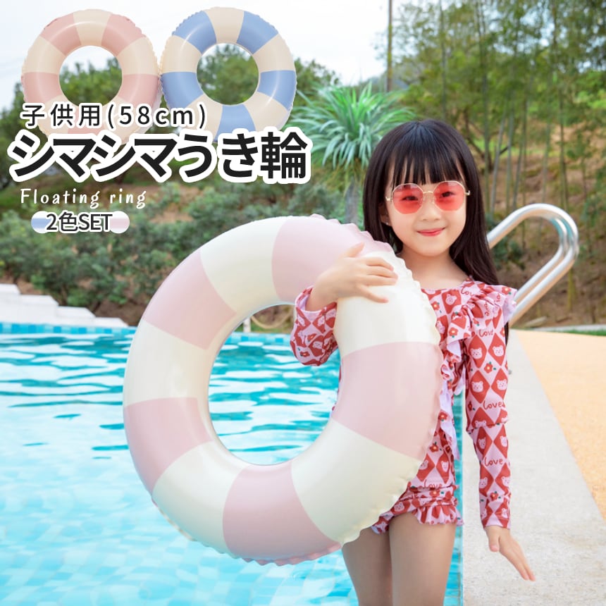 浮き輪 子供用 うきわ 外径58cm 内径26cm 2色セット かわいい ストライプ 北欧 カラー 男の子 女の子 兼用 フロート 海 海水浴 プール 夏休み 水泳 SIMAWAN-SET