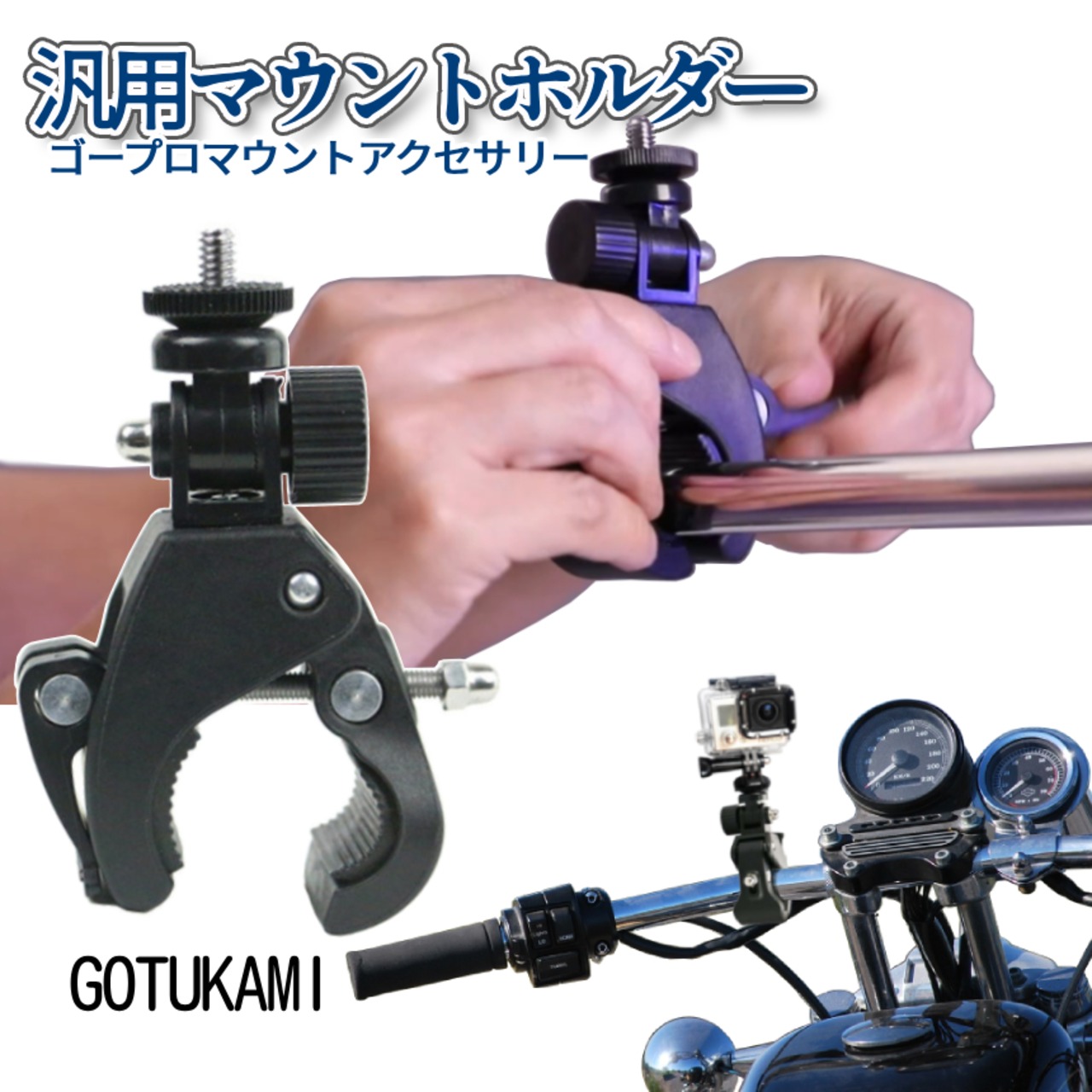 ゴープロ ポール マウント カメラホルダー カメラスタンド ジョイント 汎用 ホルダー GoPro ゴープロ用 アクセサリー 固定視点 進行方向 撮影 動画 GOTUKAMI