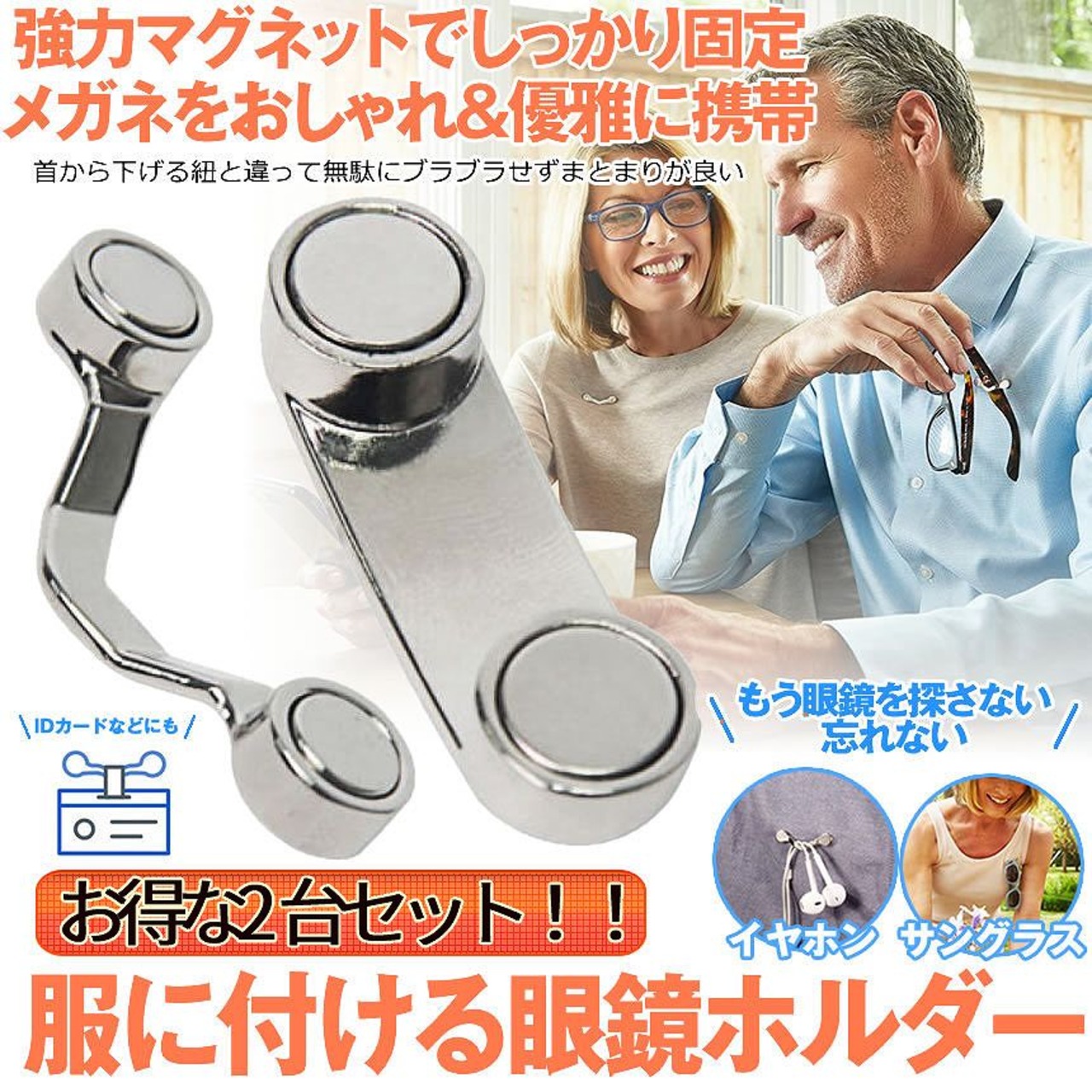 マグネット メガネ サングラス ホルダー 2個 置き忘れ 紛失 防止 磁石 服につける 眼鏡 めがね 服 メガネホルダー 名札 イヤホン ネームプレート 2-MEGAJISYA
