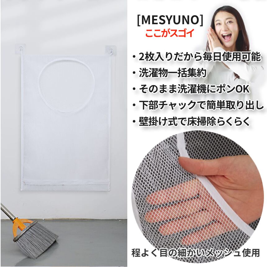 衣類収納 バッグ メッシュ 2枚入り 特大サイズ ランドリー バスケット ランドリーバッグ 壁掛け ネット デッドスペース 壁収納 下着 おもちゃ 収納 2-MESYUNO