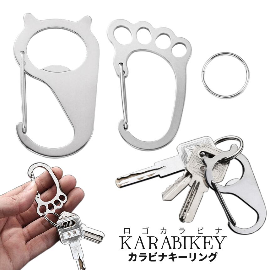 カラビナ ステンレス 猫 足跡 足 裏 CAT 栓抜き アウトドア用 カギ 持ち運び便利 防錆 キーチェーン キーリング 小型 SIMPLE キャンプギア オシャレ KARABIKEY