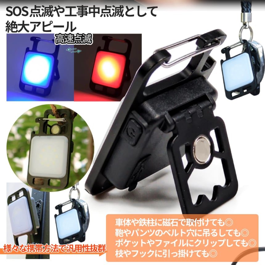 カラビナ ライト 2個セット 作業ライト COB 照明 栓抜き アウトドア用 作業灯 ハンディ 便利 磁石 防水 LEDライト 小型 充電 キャンプギア DIY 2-KARABORA