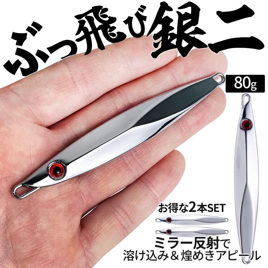 ぶっ飛び 銀色 ジグ 80g 2本SET 遠投 ルアー 銀二 SLJ ミラー ベイト シンプル 厚塗り シルバー アジ ジギング メタルジグ 2個 鏡面 青物 イサキ 真鯛 BGINJI-80