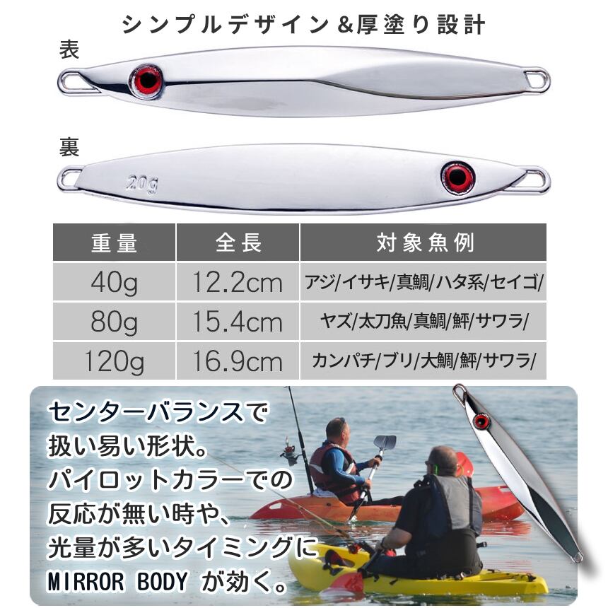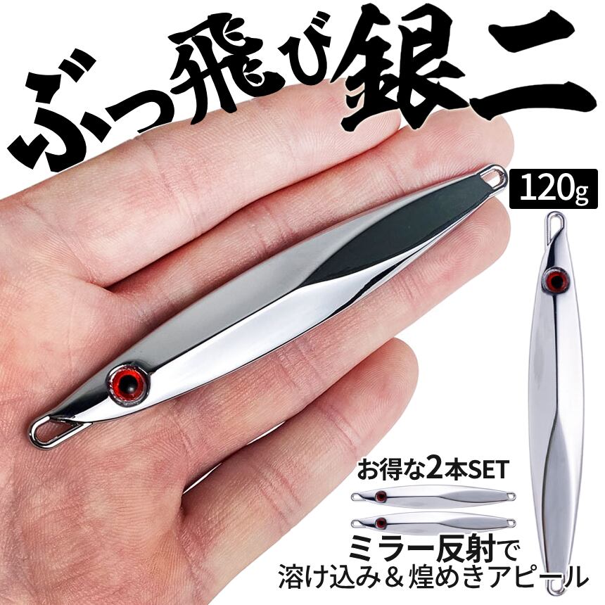 ぶっ飛び 銀色 ジグ 120g 2本SET ルアー ディープ対応 銀二 SLJ ミラー ベイト シンプル 厚塗り シルバー ジギング メタルジグ 2個 鏡面 青物 真鯛 BGINJI-120
