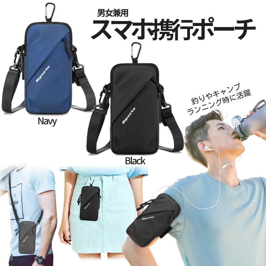 ランニング ポーチ アーム バッグ 腕 装着 防水 ショルダー 肩掛け 首掛け スマホ 収納 カラビナ スポーツ アウトドア ジョギング メンズ レディース RUNSPO