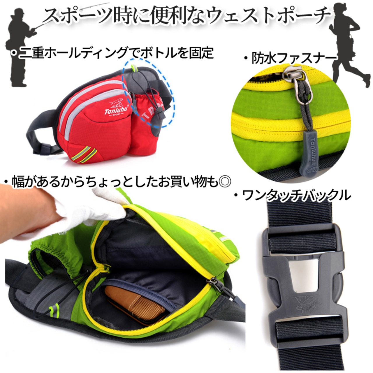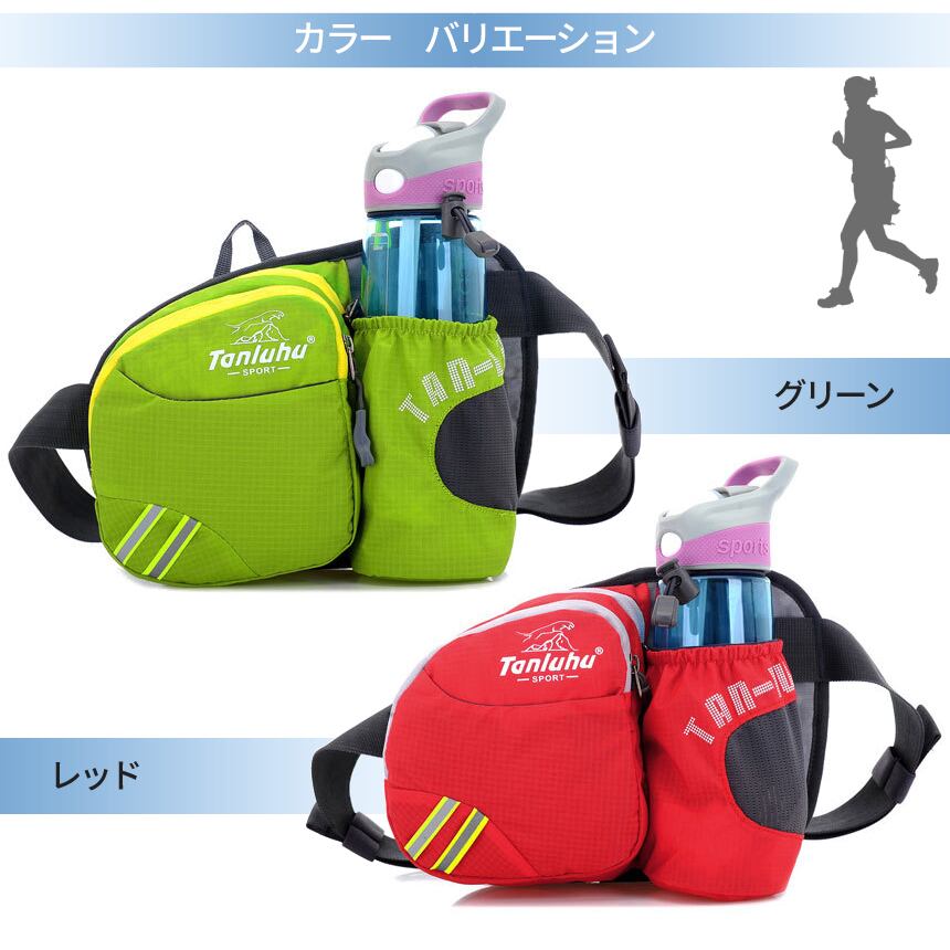 ランニング ポーチ スポーツ バッグ ペットボトル ウエストポーチ ウェスト ジョギング ショルダーバッグ ドリンクホルダー 反射 防水 釣り 男女 兼用 RUNDPO