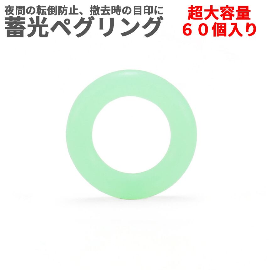 ペグリング 蓄光 60個セット 夜間 引っかけ 転倒 防止 発光 目印 蛍光 夜光 キャンプ アウトドア テント ペグ リング 安全 高弾力 高柔軟 シリコンギア 60-PEGLI