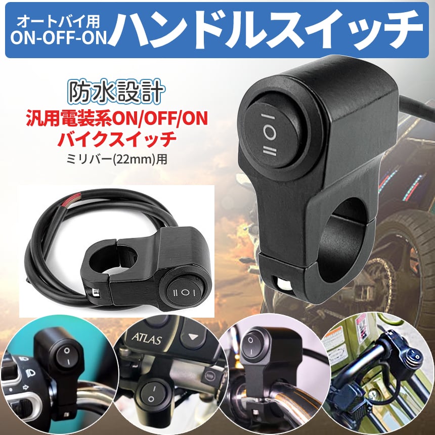 バイク スイッチ ライト 汎用 ON-OFF-ON 防水 電装 簡単 取り付け ハンドル 径 22mm ミリバー ハンドルスイッチ 12V フォグランプ 補助灯 オートバイ SANBIKESWI