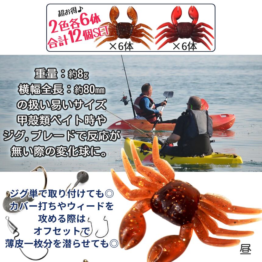 カニ ワーム ソフト ルアー 蟹 赤 茶 2色 各6体 12体セット 釣り 海水 ソルトウォーター 対応 疑似餌 クラブ フィッシング タコ バス チヌ 鯛 投げ 2-MASAKANI