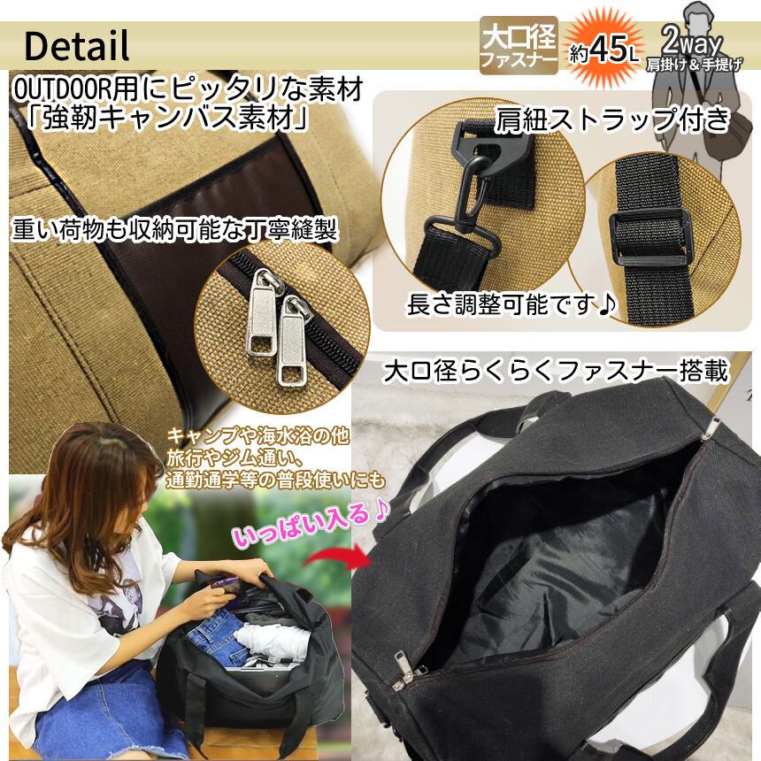 アウトドア用 収納 バッグ キャンバス素材 45L ブラック カーキ 肩掛け ショルダーバッグ 収納袋 大容量 シンプル アウトドア袋 鞄 旅行 キャンプギア AUCABAG