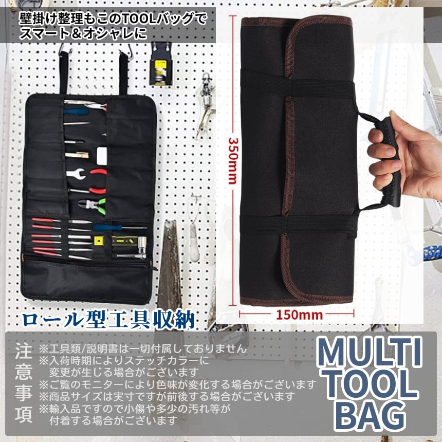 ツールバッグ 工具入れ 工具 収納 DIY ツール バッグ ロール タイプ 頑丈 素材 持ち手 持ち運び 携帯 ファスナー ゴムバンド 工具箱 ケース 巻き物 MAKITOOL