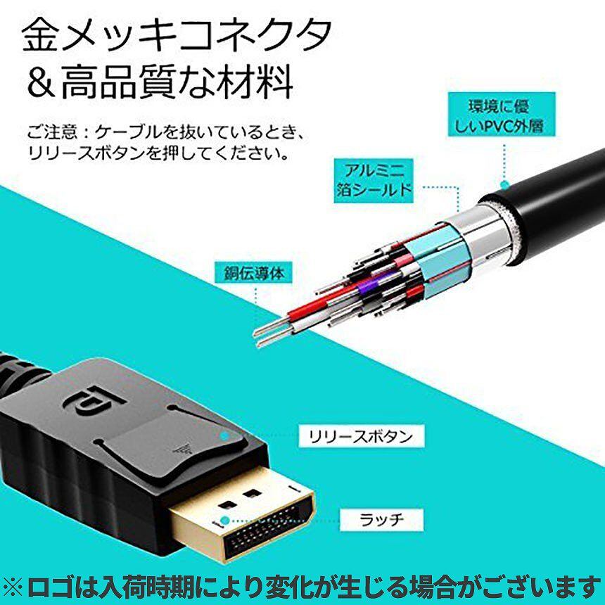 DisplayPort to HDMI 変換 ケーブル 1.8m DP ポート ディスプレイ ノート パソコン PC テレビ TV モニター 1080P フル HD 映像 簡単 接続 転送 HDTV DPHDCODE