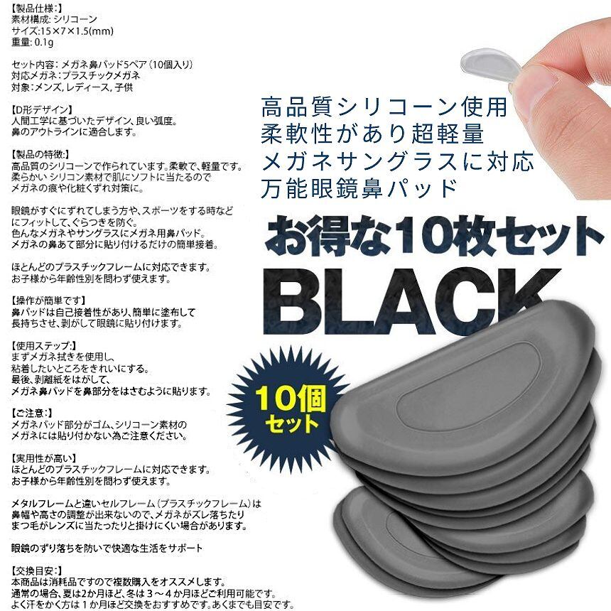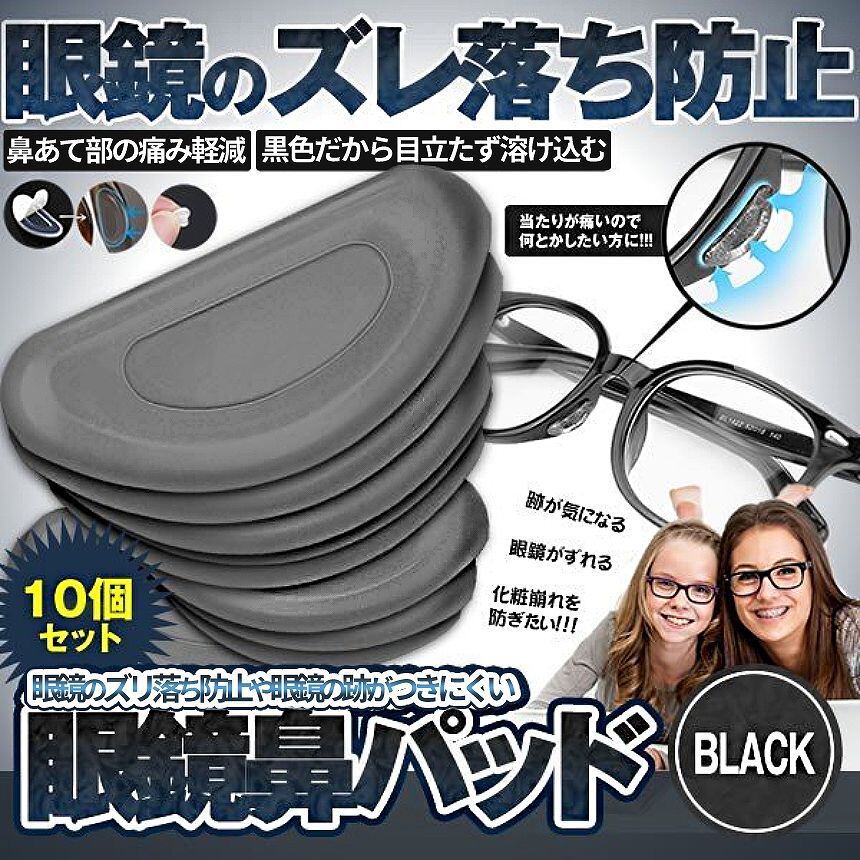 メガネ ズレ 防止 パッド 10個 ブラック シリコン 鼻 跡がつかない 軽量 貼るだけ シール 眼鏡 めがね サングラス 鼻パッド 簡単 装着 黒 黒ぶち 10-HANAPAD-BK