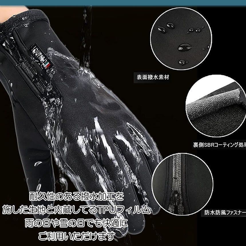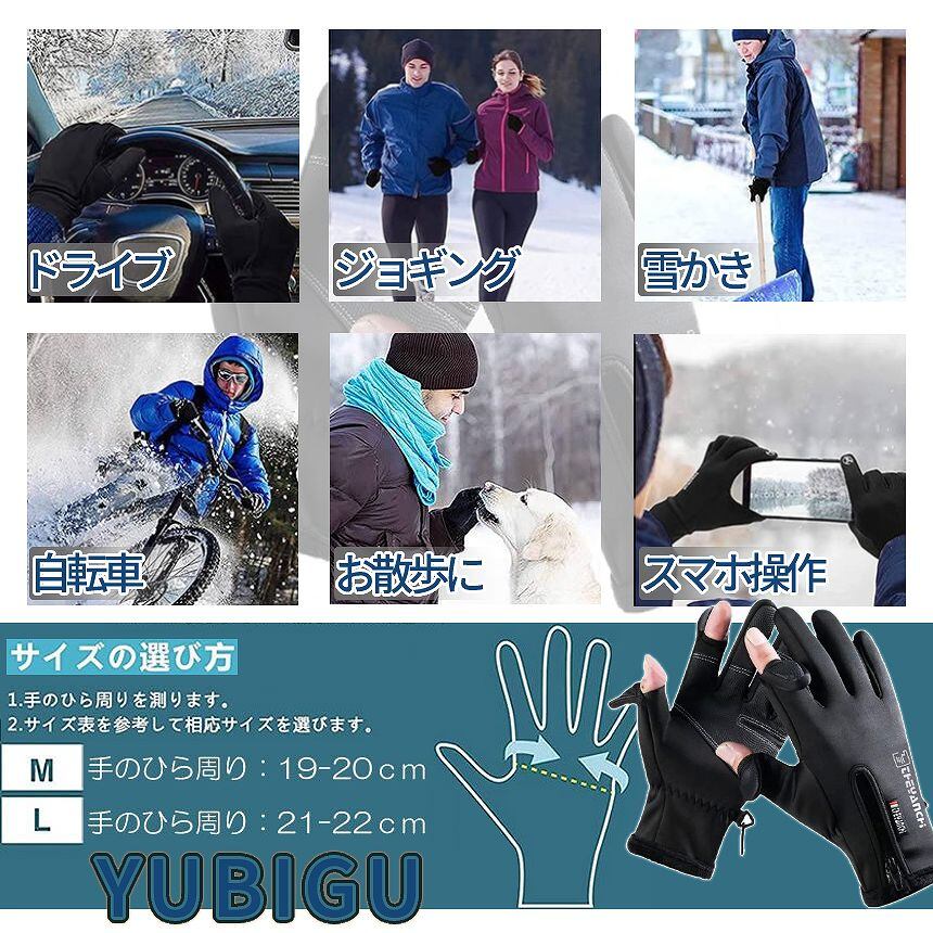防寒 裏起毛 グローブ 2本 指出し 可能 手袋 スマホ タッチ パネル 操作 対応 フリース バイク 自転車 撥水 防風 滑り止め 通勤 通学 雪かき ブラック YUBIGU