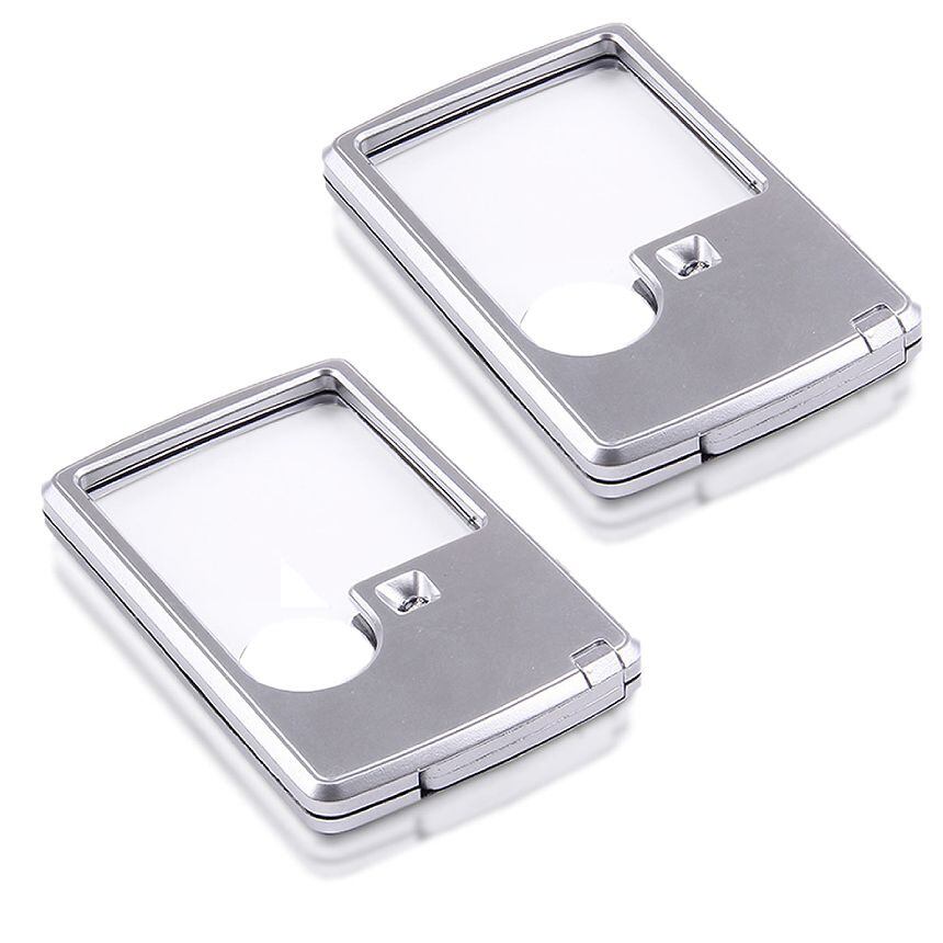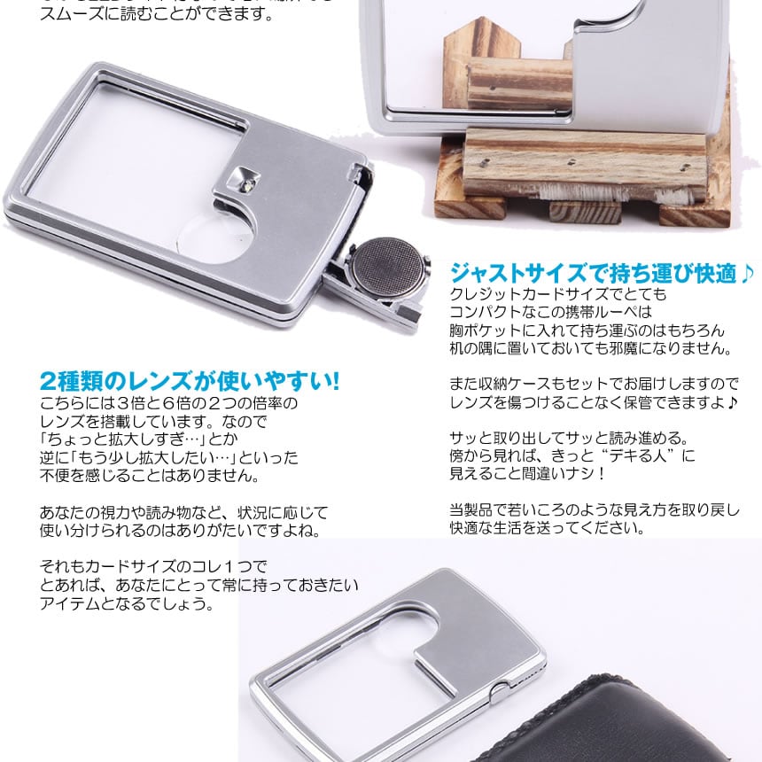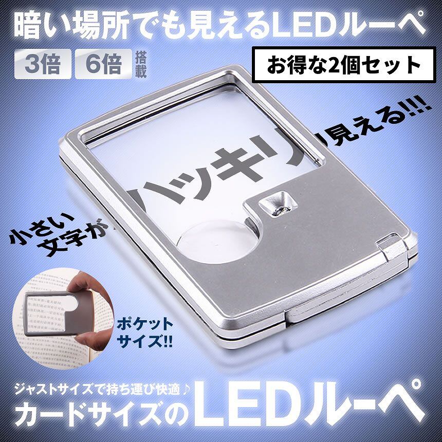 ミニ LED ルーペ 2個 3倍 6倍 カード ポケット サイズ 携帯 ライト 小型 2種類 レンズ 新聞 雑誌 書類 老眼 小さい 文字 ソフト ケース 持ち運び 簡単 2-MILULU