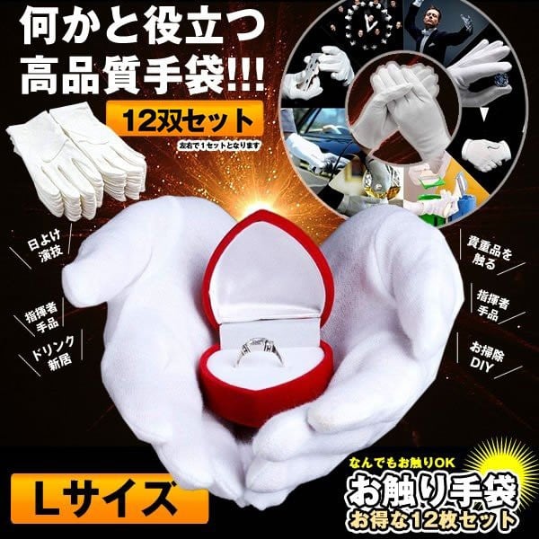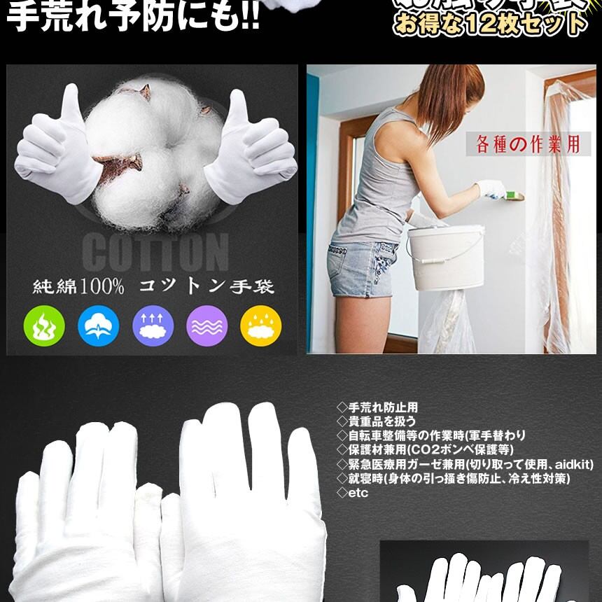 万能 コットン 手袋 12組 セット Lサイズ 薄手 綿 100% 白手袋 白手 使い捨て 接触 保湿 手荒れ 防止 冷え性 対策 作業 軍手 運転 貴重品 男女 兼用 12-TEBU-L