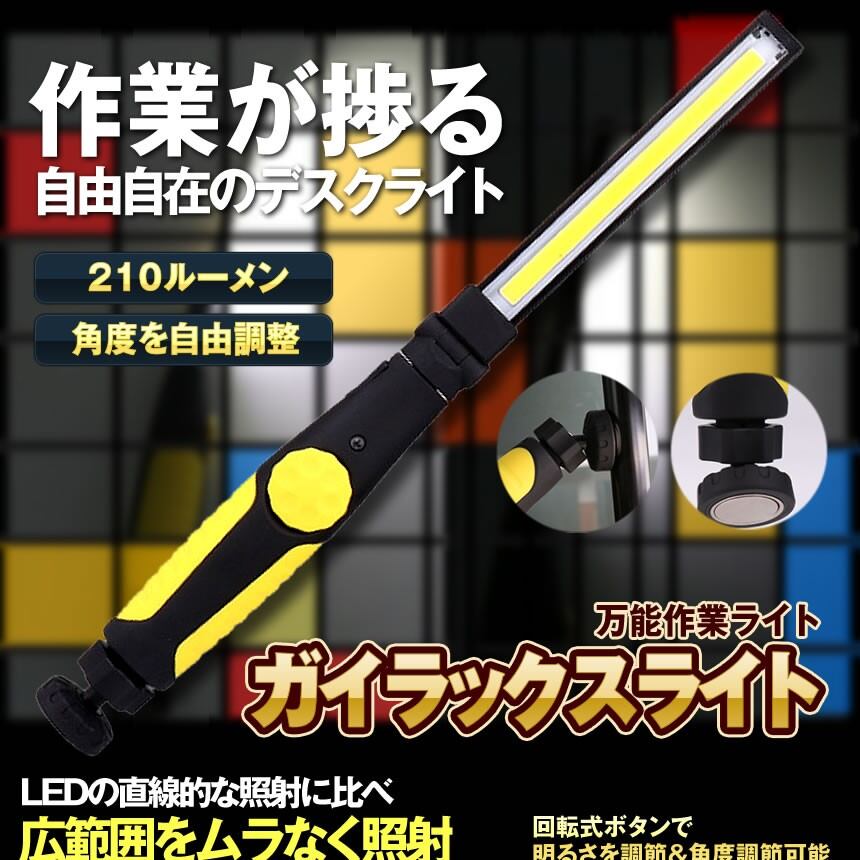 COB LED 折りたたみ ライト USB 充電 ワークライト 210ルーメン 回転 調光 ボタン 角度調節 磁石 マグネット 作業灯 工事 災害 停電 アウトドア キャンプ COBBOW