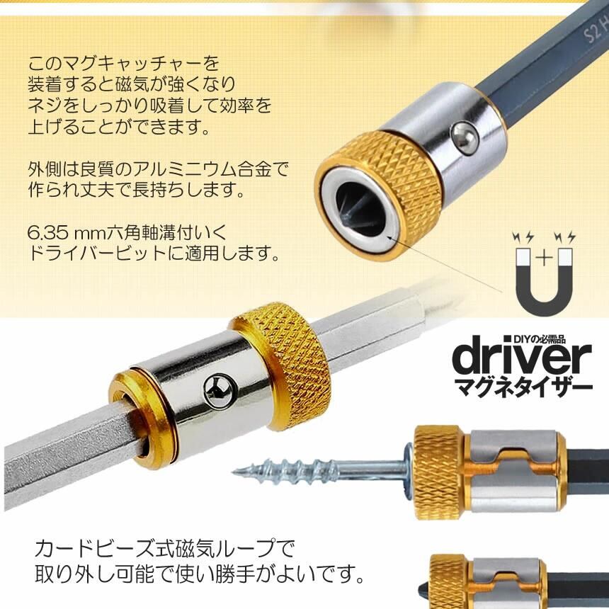 ビット マグネット ホルダー 3個 2セット 6.35mm マグネタイザー ビスキャッチ ネジ ビス 固定 磁石 1/4 ビット専用 簡単取付 金属製 DIY 工具 ツール 2-BITMAGU