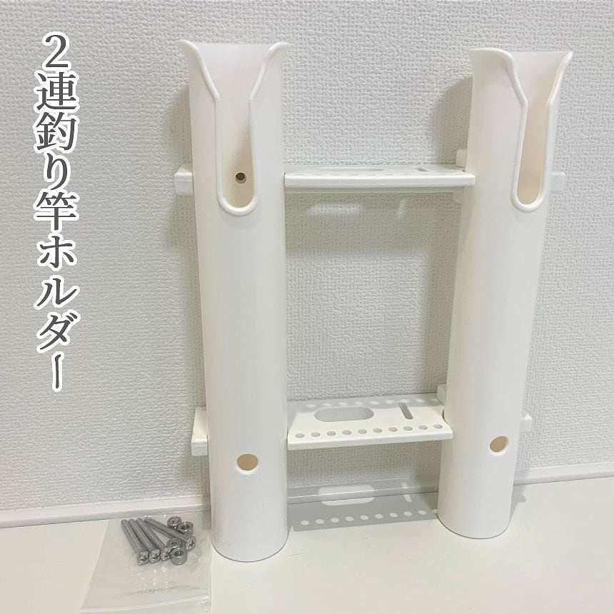 ロッド ホルダー 2連 スタンド プラスチック 組み立て 船 釣り 竿 釣竿 竿立て フィッシング 針 フック 穴 ナイフ ペンチ ランディング ネット ネジ 固定 SAOHOL