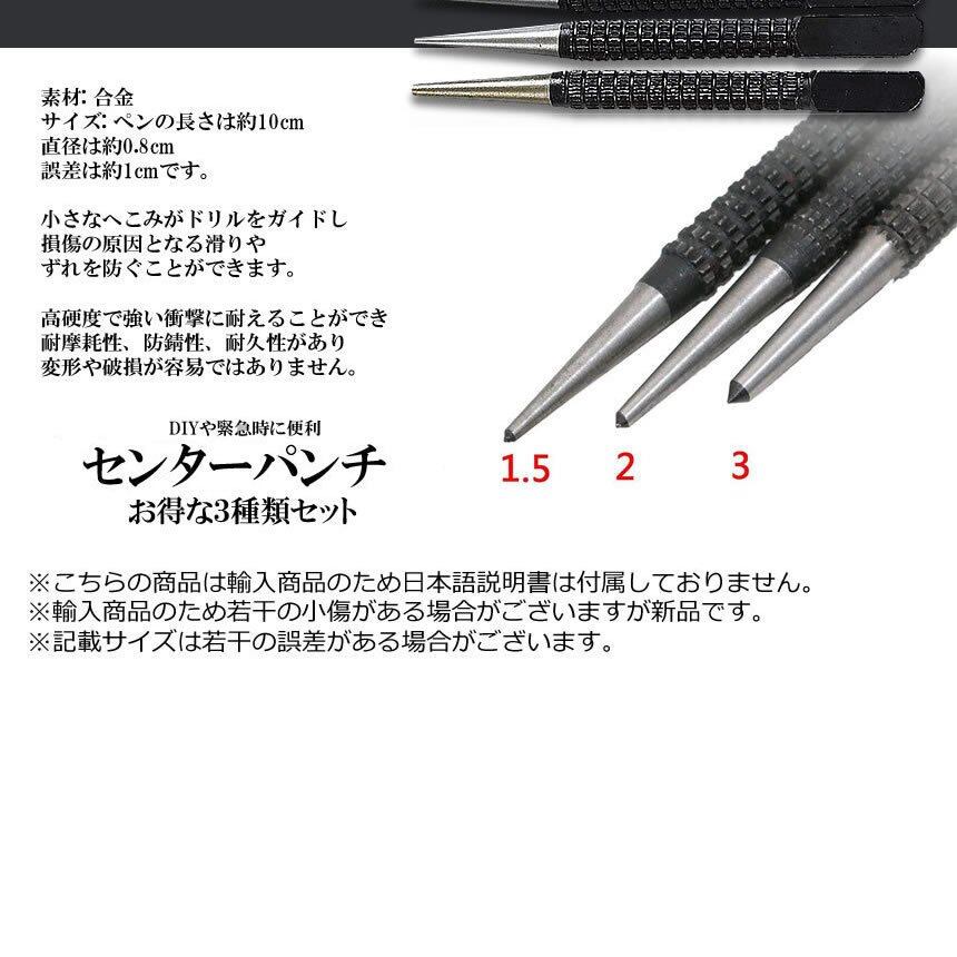 センター パンチ 3サイズ セット 1.5mm 2mm 3mm センターポンチ 下穴 穴あけ 穴 ポジション マーキング ポンチャー 打刻 ハンドツール ドリル DIY 工具 ANAPANCH