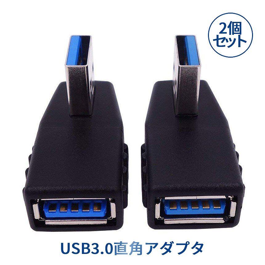 USB3.0 直角 L型 アダプタ 90度 方向 転換 左右 セット USB 3.0 左向き 右向き オス メス タイプA L字 コネクタ ノート パソコン PC 変換 ケーブル HOKOTENADA