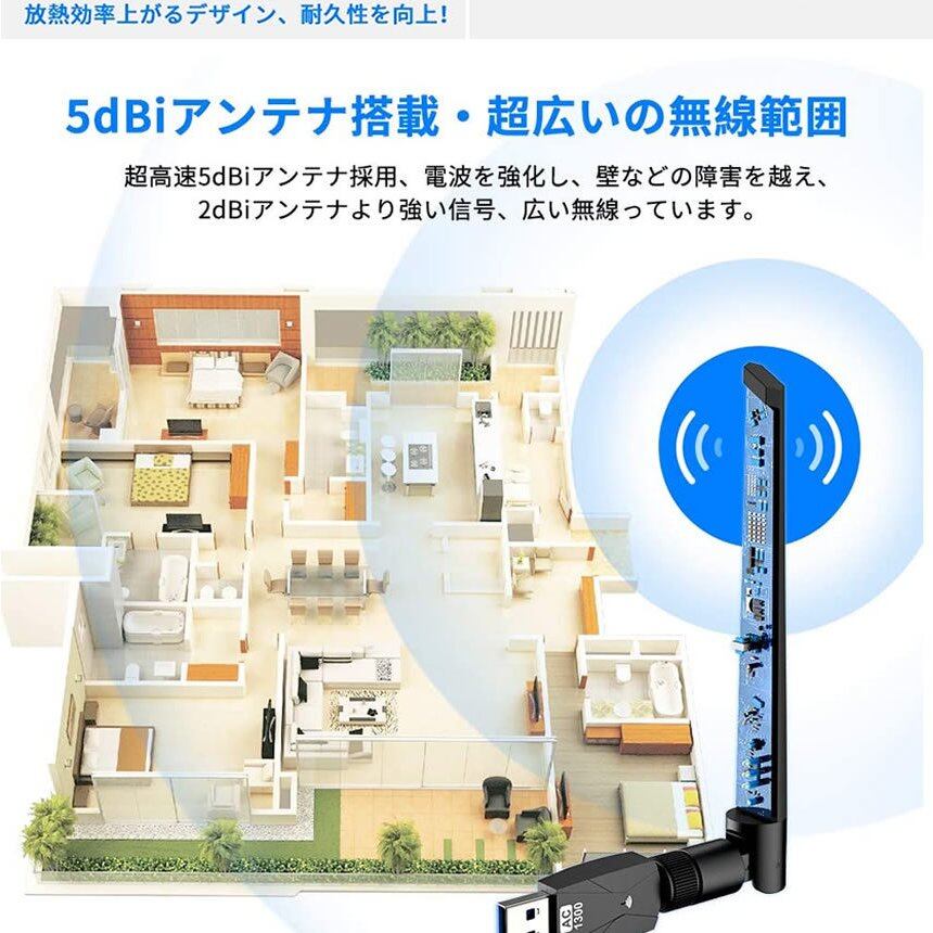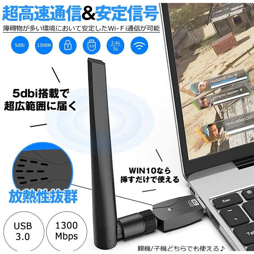 無線 LAN 子機 親機 Wifi Wi-Fi USB3.0 アダプター 1300Mbps 2.4GHz 5GHz デュアルバンド 5dBi 無線LAN 高速 通信 広範囲 ワイヤレス USB 挿すだけ 簡単 LANKOKI