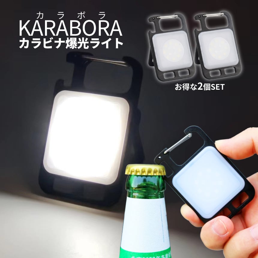 カラビナ ライト 2個セット 作業ライト COB 照明 栓抜き アウトドア用 作業灯 ハンディ 便利 磁石 防水 LEDライト 小型 充電 キャンプギア DIY 2-KARABORA