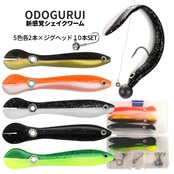 踊狂 オドグルイ シェイク ワーム 5色 合計10本入り ケース付き ジグヘッド 5g フック付き バス チヌ シーバス 根魚 釣り 疑似餌 ソフトルアー ODOGURUI-2