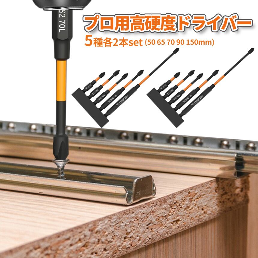 ドライバー ビット 5種 2pcsセット 50mm-150mm プラスドライバー 漆黒 Black ヘックスローブ 六角軸 ネジ 電動 ドライバー インパクト 工具 DIY 2-BKDORA5