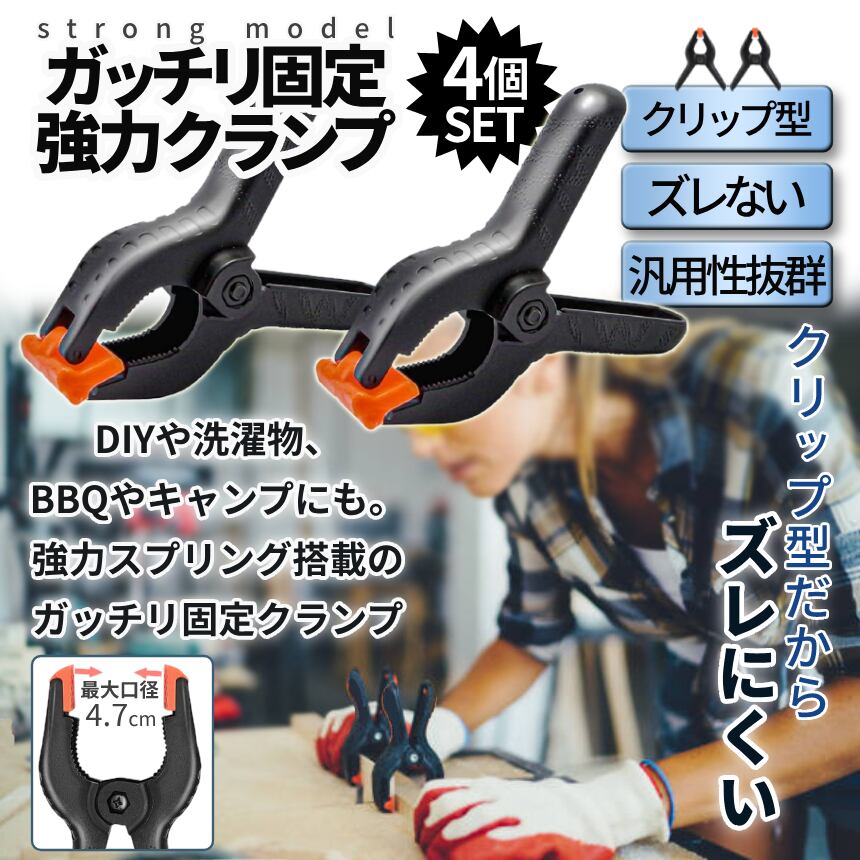 クリップ型 固定 クランプ 4個セット DIY ズレない クリップクランプ 固定クリップ 物干し 洗濯バサミ 作業 組み立て 穴あけ ドライバー 頑丈 2-BIGKOTEKURA