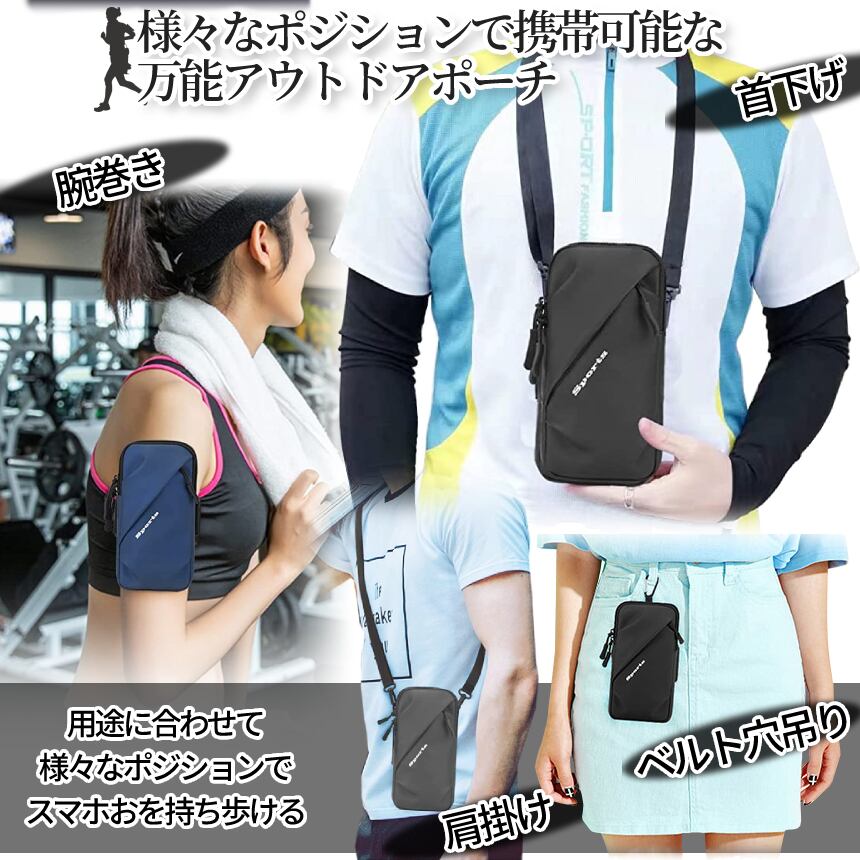 ランニング ポーチ アーム バッグ 腕 装着 防水 ショルダー 肩掛け 首掛け スマホ 収納 カラビナ スポーツ アウトドア ジョギング メンズ レディース RUNSPO