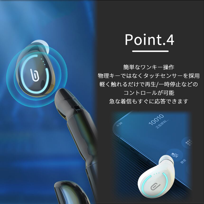 イヤホン ワイヤレス Bluetooth 片耳 ノイズキャンセリング マイク 搭載 通話 対応 タッチ操作 車 運転 防水 IPX5 小型 軽量 USB 充電 ホワイト ブラック BULEAR