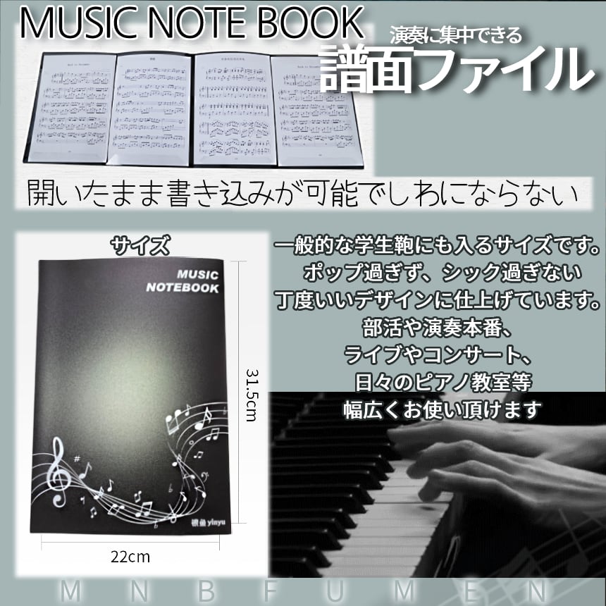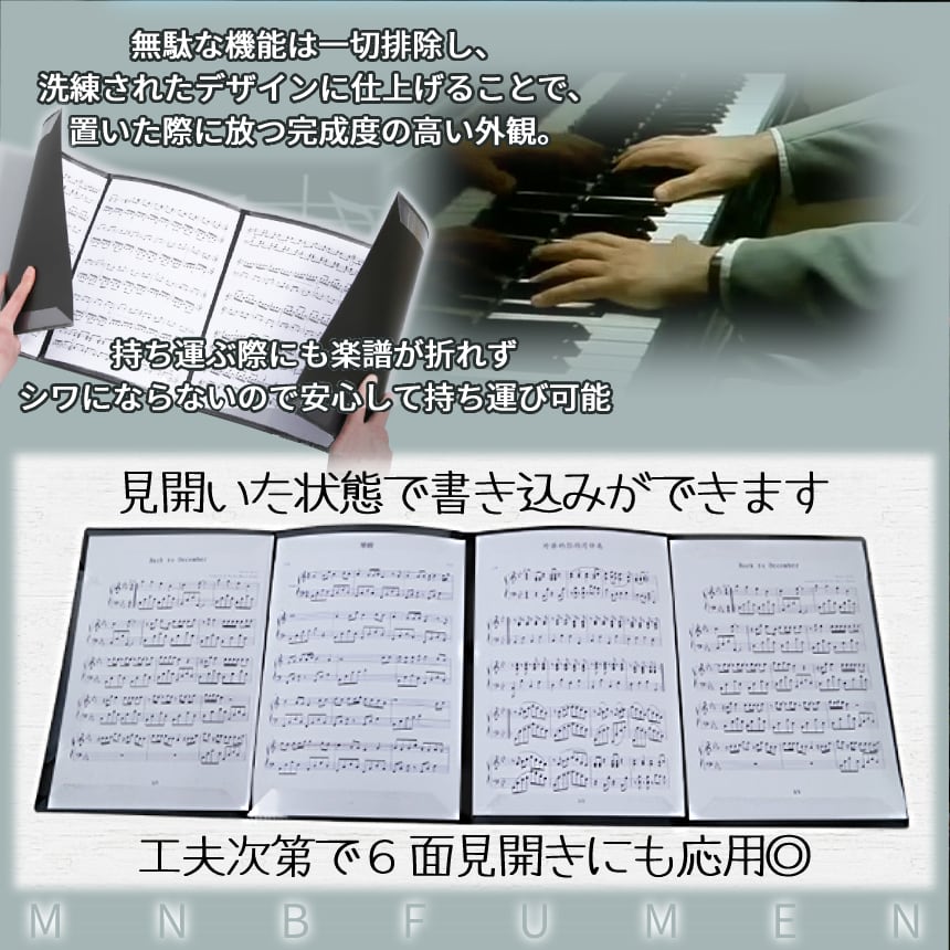 楽譜 ファイル 書き込み 譜面 4面 見開き 最大6面 A4 ピアノ 演奏 捲る 手間いらず カバー 収納 ギター 発表会 演奏会 レッスン 音楽 教室 吹奏楽 部活 MNBFUMEN