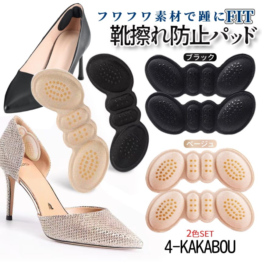 踵 ずれ防止 パッド ブラック ベージュ 各色 2枚入り クッション 靴擦れ パカパカ 防止 かかと用 ふんわり素材 サイズ調整 革靴 パンプス インソール 4-KAKABOU