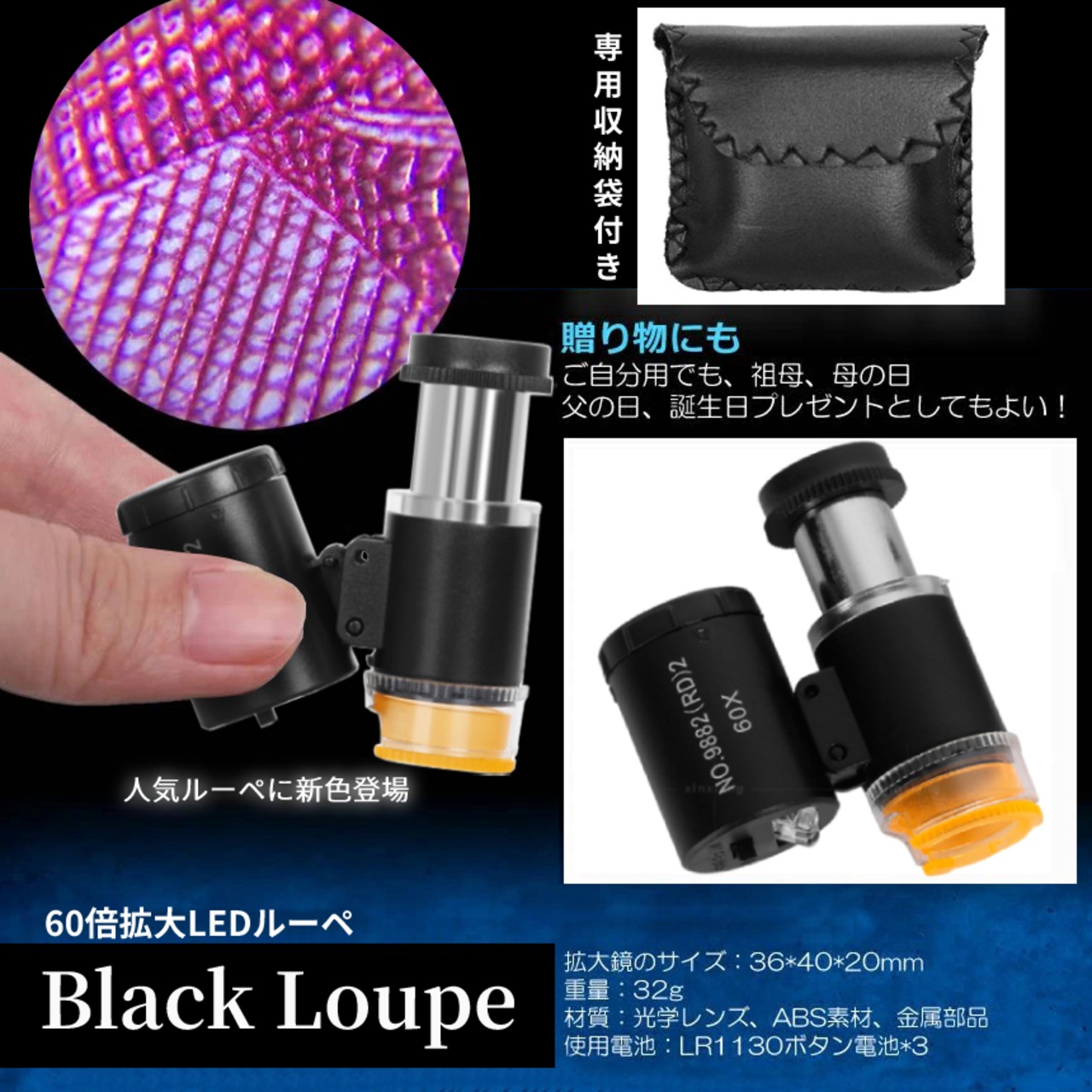 ミニ ルーペ LEDライト UVライト LED ライト 60倍 拡大 ブラックライト 紫外線 拡大鏡 細かい 作業 虫めがね 顕微鏡 鑑定 宝石 小型 携帯 コンパクト BKRUPE