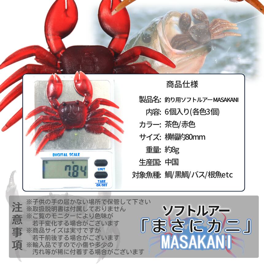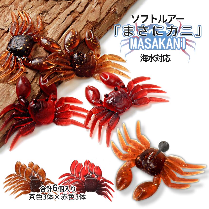 カニ ワーム ソフト ルアー 蟹 赤 茶 2色 各3体 6体セット 釣り 海水 ソルトウォーター 対応 疑似餌 クラブ フィッシング タコ バス チヌ 鯛 投げ 海 MASAKANI