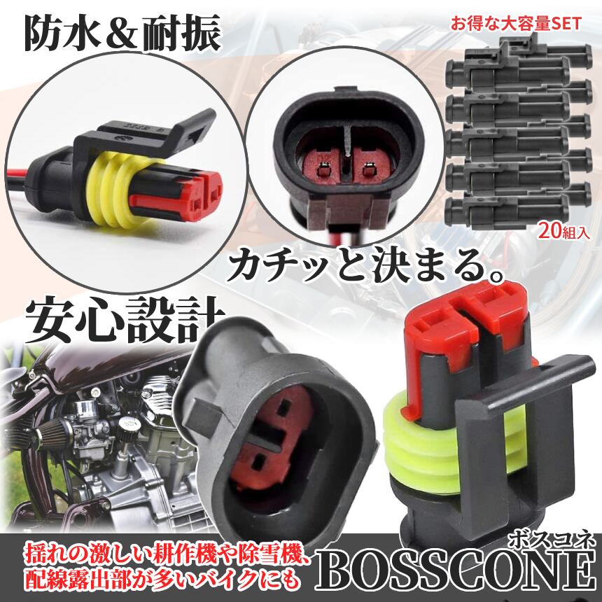 防水 配線 コネクター 耐振 カプラー セット 20組入 車 バイク カスタム 整備 日本語操作手順 爪 防水カプラー オス メス 接続 端子 圧着 電気配線 2-BOSSCONE