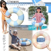 浮き輪 子供用 うきわ 外径58cm 内径26cm 2色セット かわいい ストライプ 北欧 カラー 男の子 女の子 兼用 フロート 海 海水浴 プール 夏休み 水泳 SIMAWAN-SET