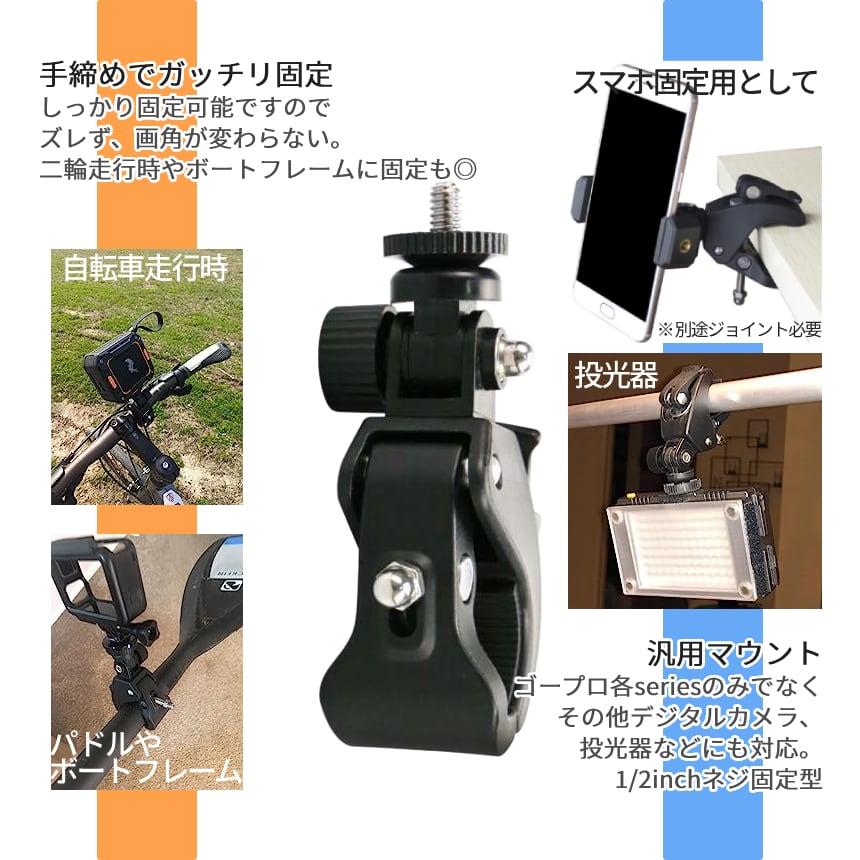 ゴープロ ポール マウント カメラホルダー カメラスタンド ジョイント 汎用 ホルダー GoPro ゴープロ用 アクセサリー 固定視点 進行方向 撮影 動画 GOTUKAMI