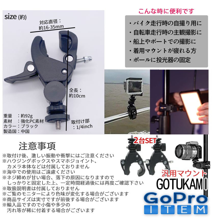 ゴープロ ポール マウント 2台入り カメラ ホルダー カメラスタンド ジョイント 汎用 GoPro ゴープロ用 アクセサリー 固定視点 進行方向 撮影 動画 2-GOTUKAMI