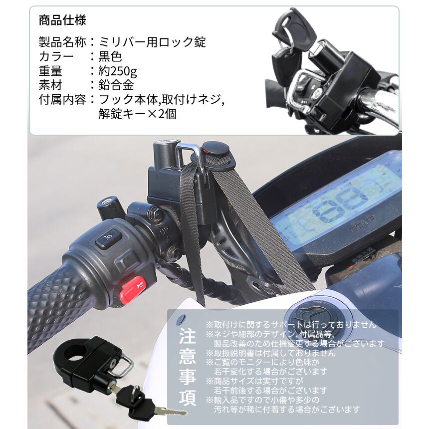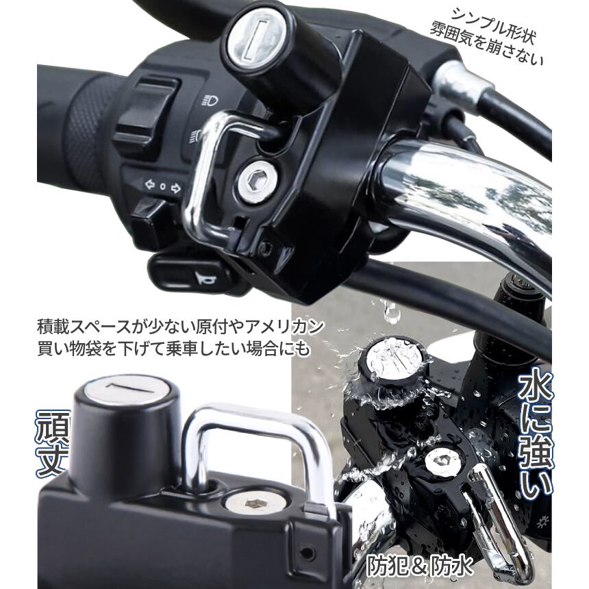 ボルトONで簡単装着できるバイク用吊り下げロック錠。