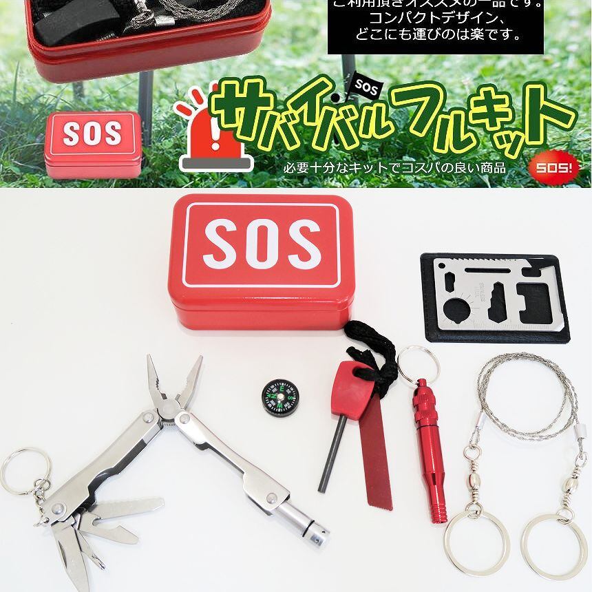 サバイバル ツール 6点 セット 災害 対策 救助笛 方位磁石 ワイヤーのこぎり ナイフ カード型ツール ファイアー スターター アウトドア キャンプ 登山 SABASET