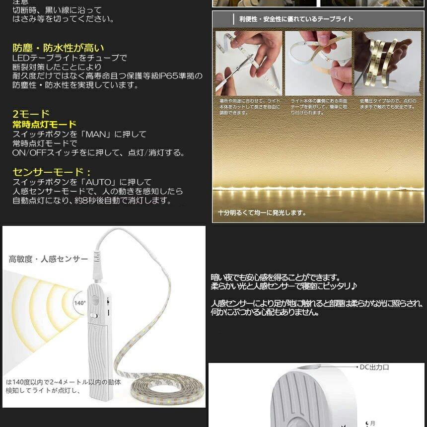 テープ ライト LED 人感センサー 2m 動作 感知 自動 点灯 消灯 電池 夜 間接 照明 クローゼット 階段 ベッド キッチン 押し入れ 倉庫 納戸 光 OPENLEDT
