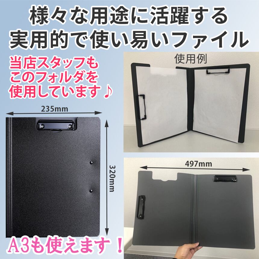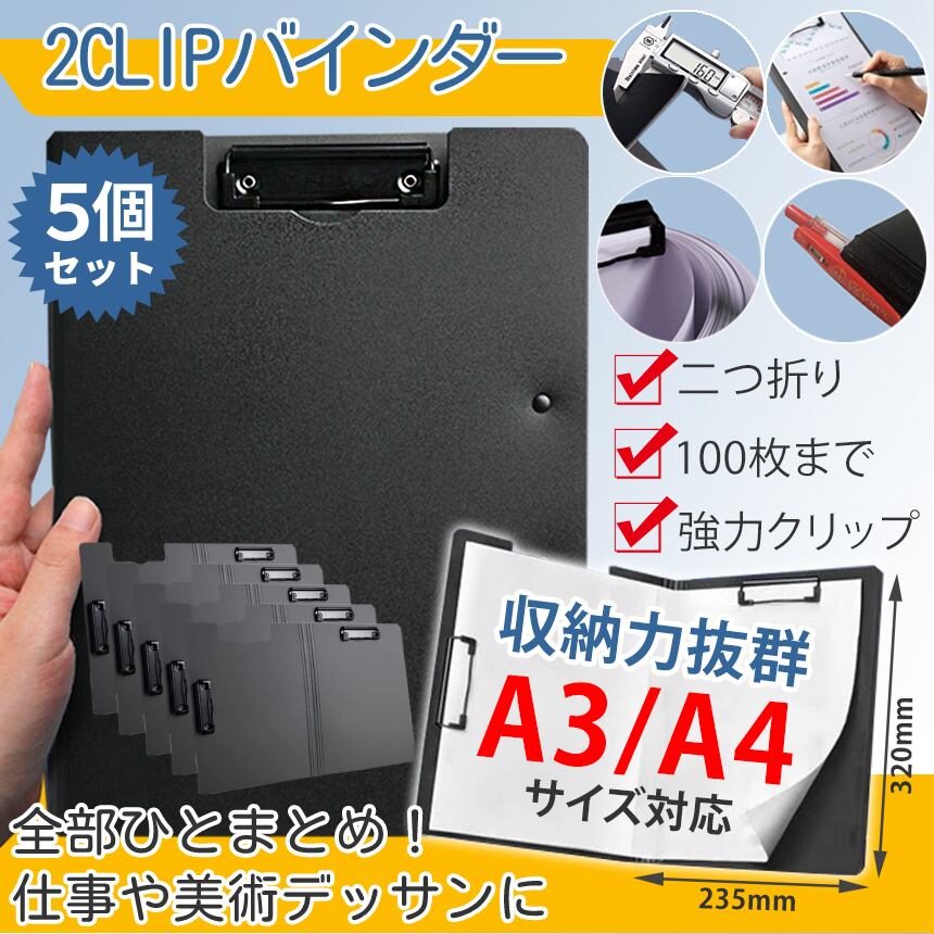バインダー ファイル A3 A4 対応 兼用 5個セット 100枚 収納 可能 二つ折り ダブル クリップ フォルダ 書類 会議 授業 デザイン 紙 プリント デッサン 5-FARUDA
