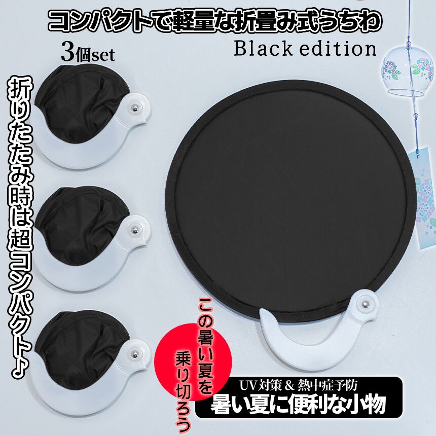 折りたたみ団扇 うちわ ブラック 3枚セット 持ち運び便利 ミニうちわ コンパクト 夏 涼しい ポケットサイズ 扇子 黒 暑さ対策 プレゼント 贈り物 3-ORIUTI-BK